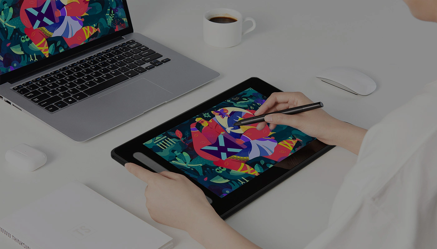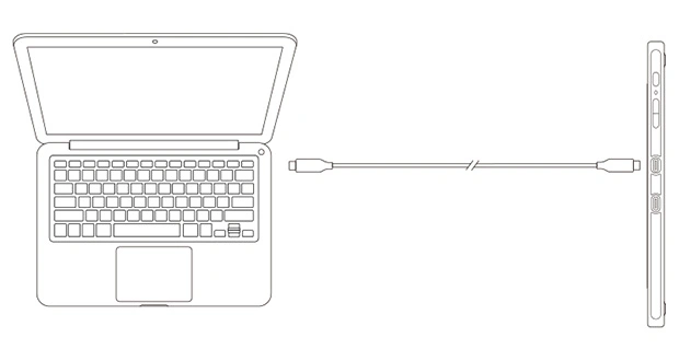 全功能 USB-C 连接线连接手绘屏及电脑。