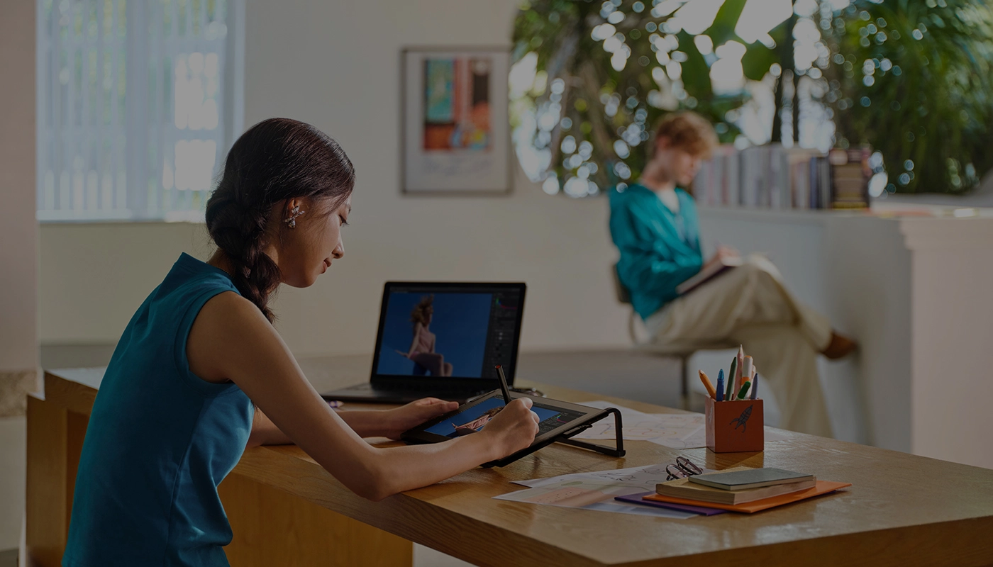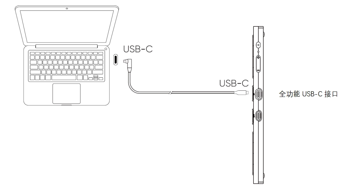 2. 将USB-C连接线插入手绘屏端标识为