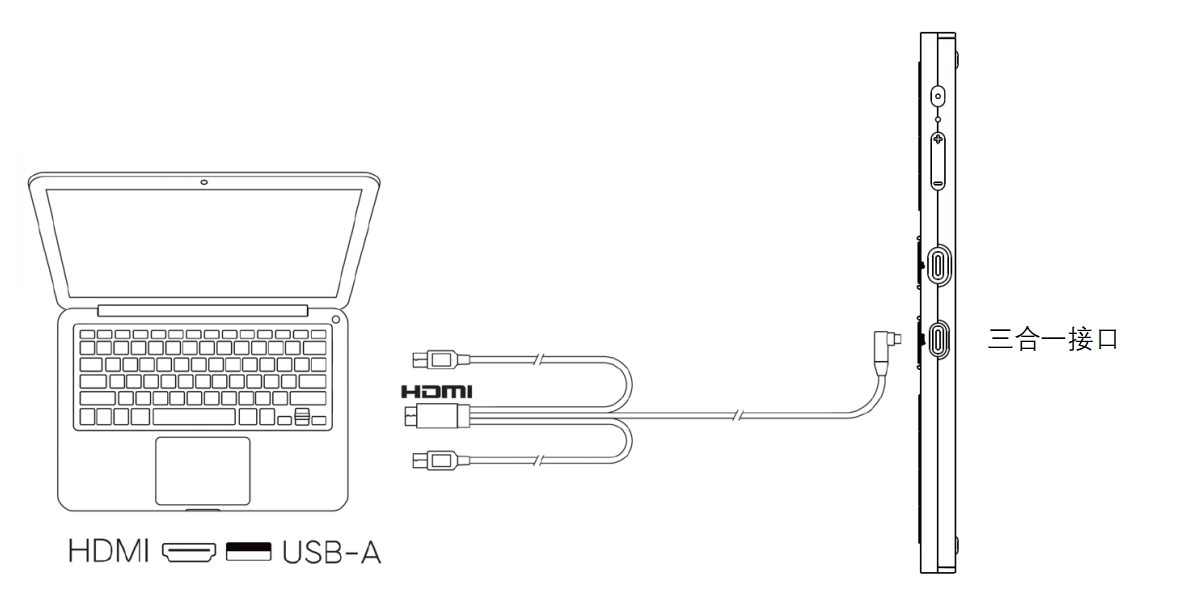 2. 连接到具有USB-A与HDMI接口的电脑