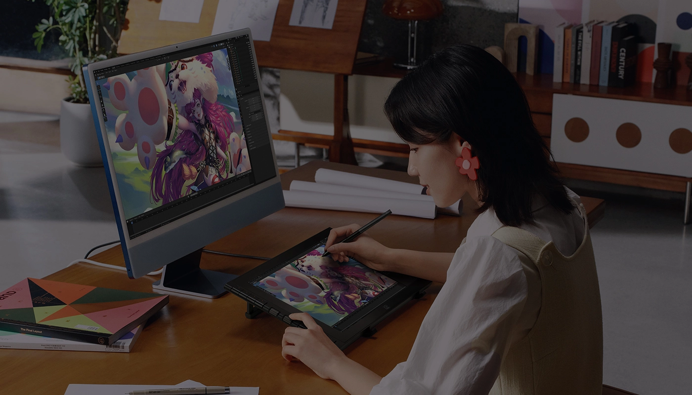 2. 将USB-C连接线插入手绘屏端标识为