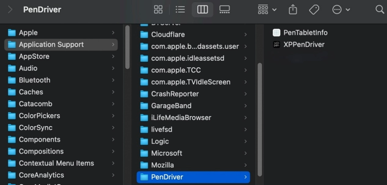 如列表中无相关选项,请前往资源库->Application Support->PenDriver 手动添加。