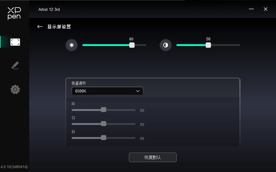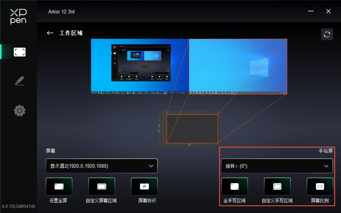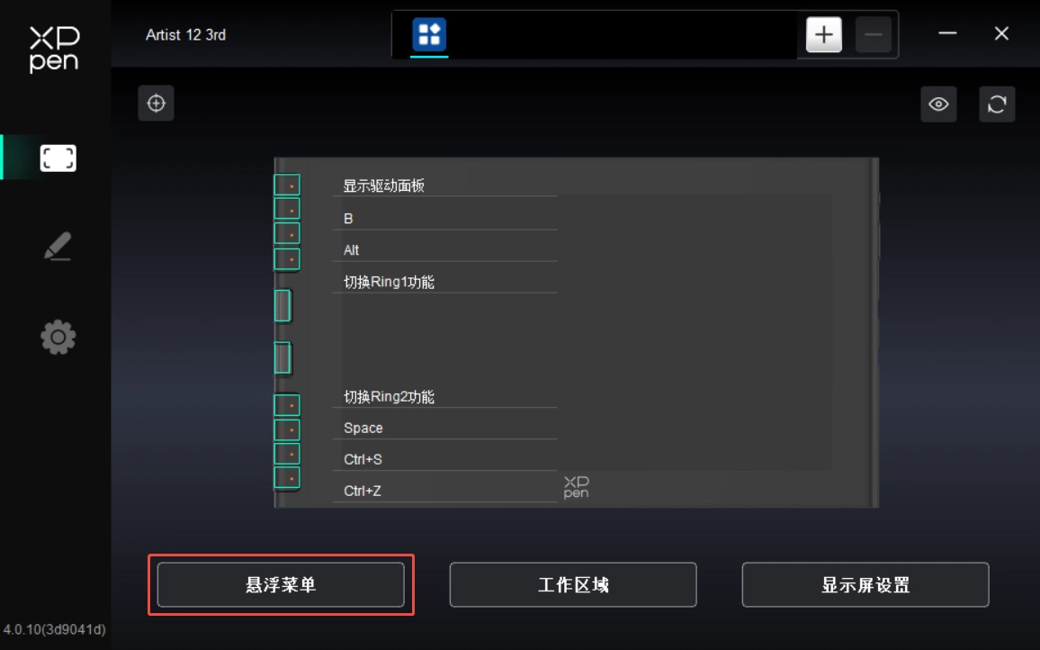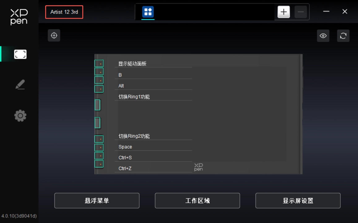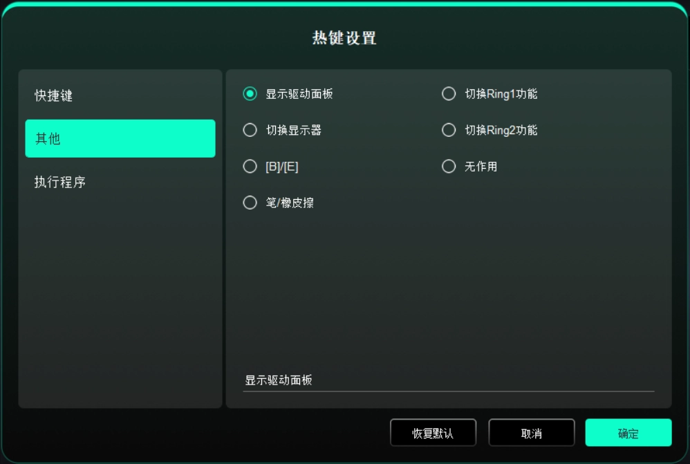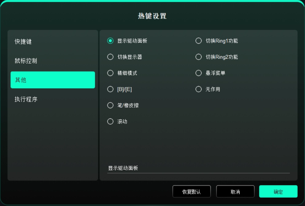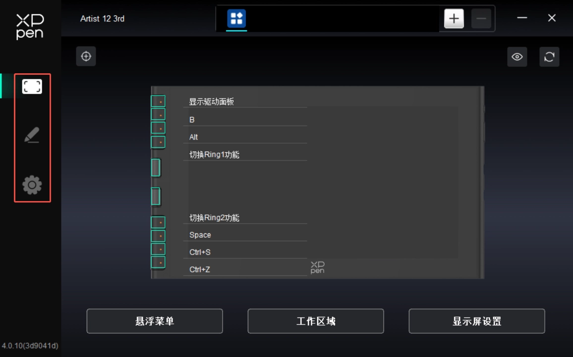 通过点击驱动左侧图标,可以切换驱动功能,帮助您设置手绘屏的相关设定,包括:
