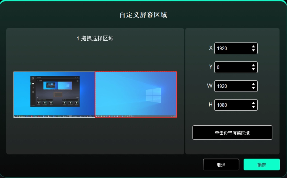 单击设置屏幕区域:单击后,在显示器上点击要选取的“左上角”位置和“右下角”