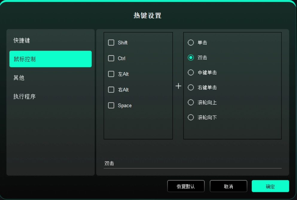 设置鼠标和键盘组合键,如选择“Shift”和“单击”后,可在支持此组合键的软件中实现此快捷操作。