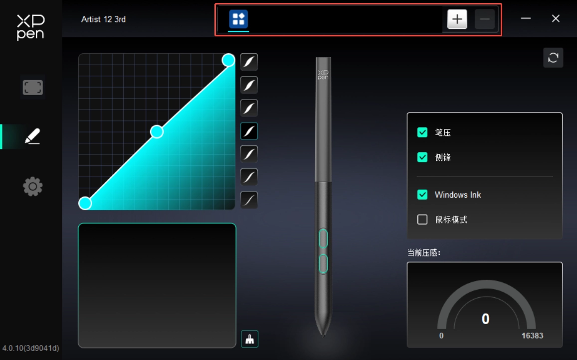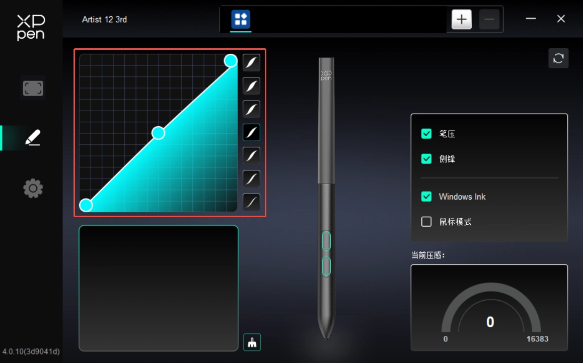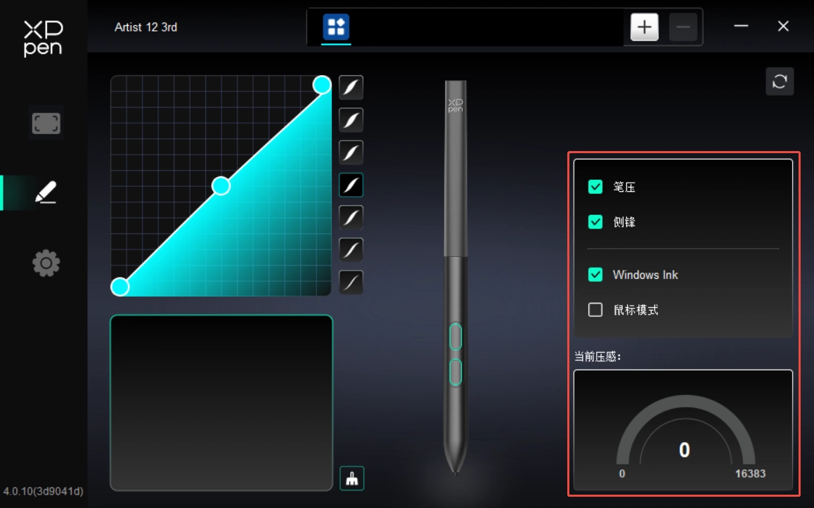 6) 如果驱动程序中的笔压正常(Windows:确保驱动程序的笔设置中启用了Windows Ink),请运行绘图软件并再次测试。