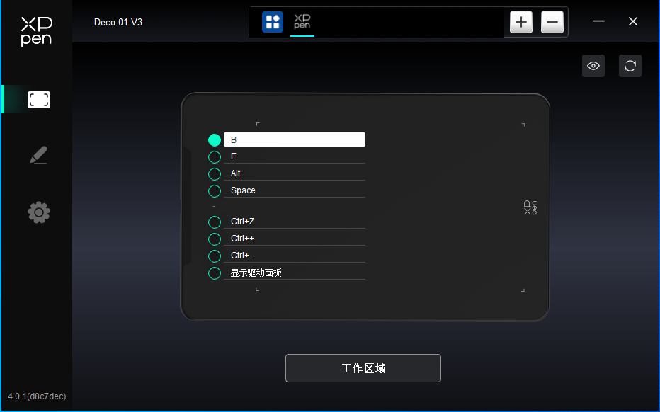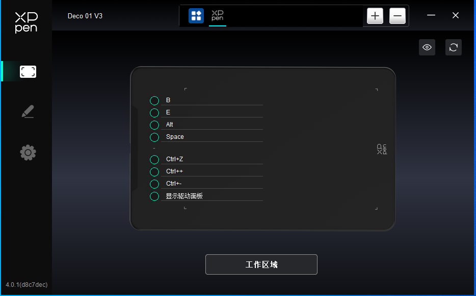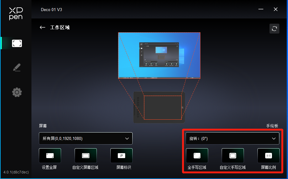 工作区域可以帮助您定义设备工作区域和屏幕显示区域的映射关系。