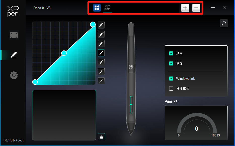 当笔位于感应区域范围内时,会自动识别不同型号的笔并将其添加到驱动中,所使用手绘笔需与产品兼容。