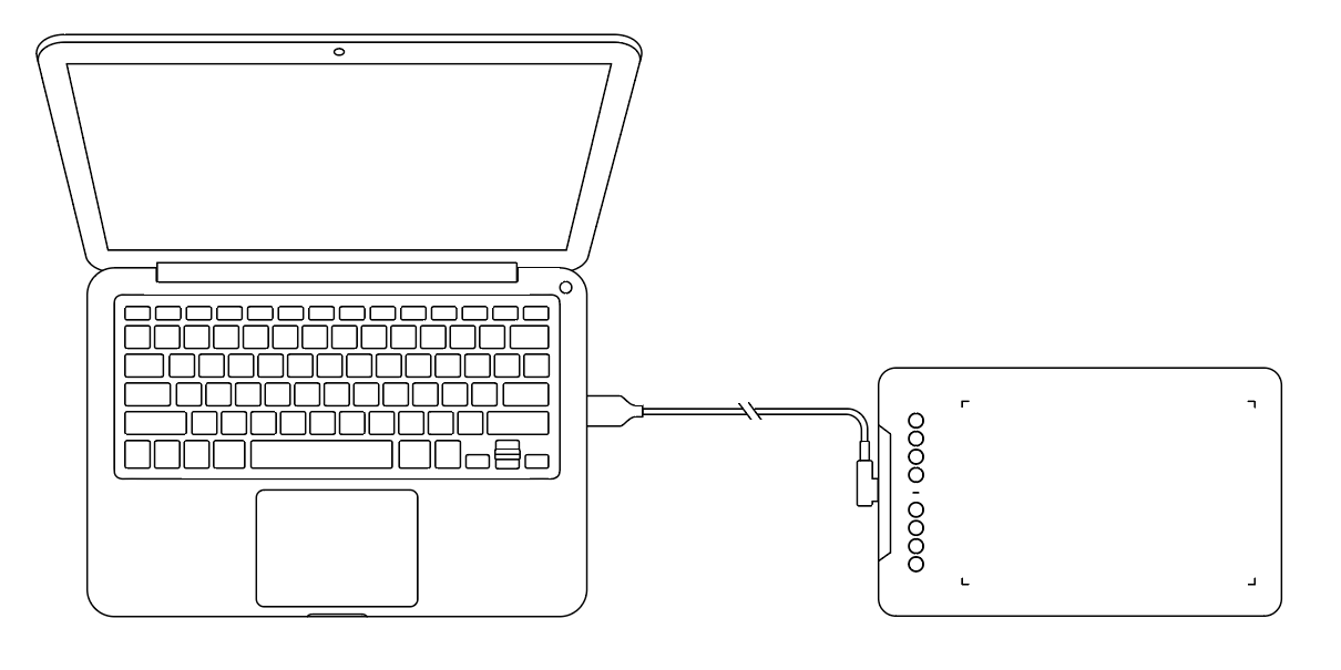 请将USB-C to USB-A连接线,分别连接至电脑端的USB接口和手绘板端的USB-C接口。