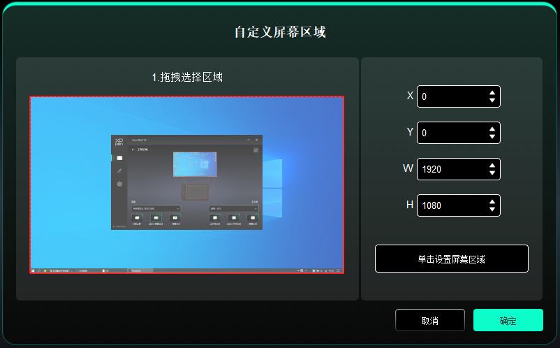 单击设置屏幕区域:单击后,在显示器上点击要选取的“左上角”位置和“右下角”位置。