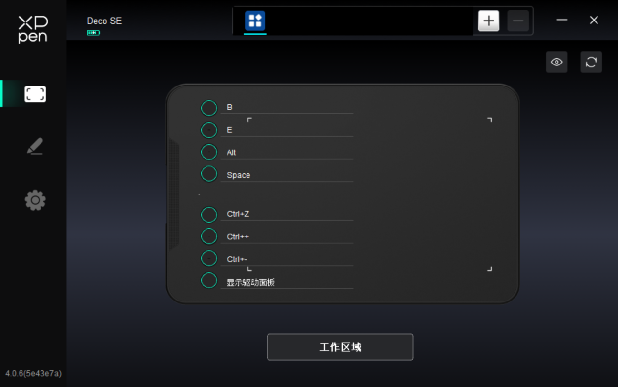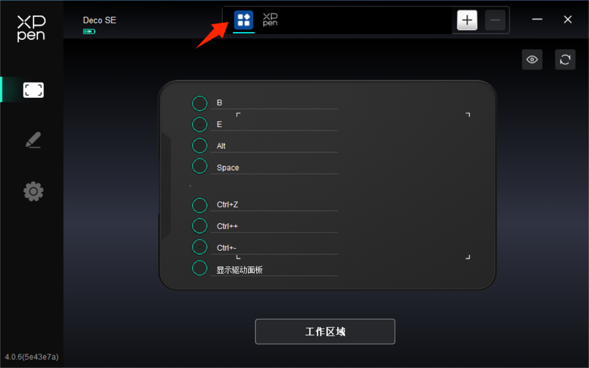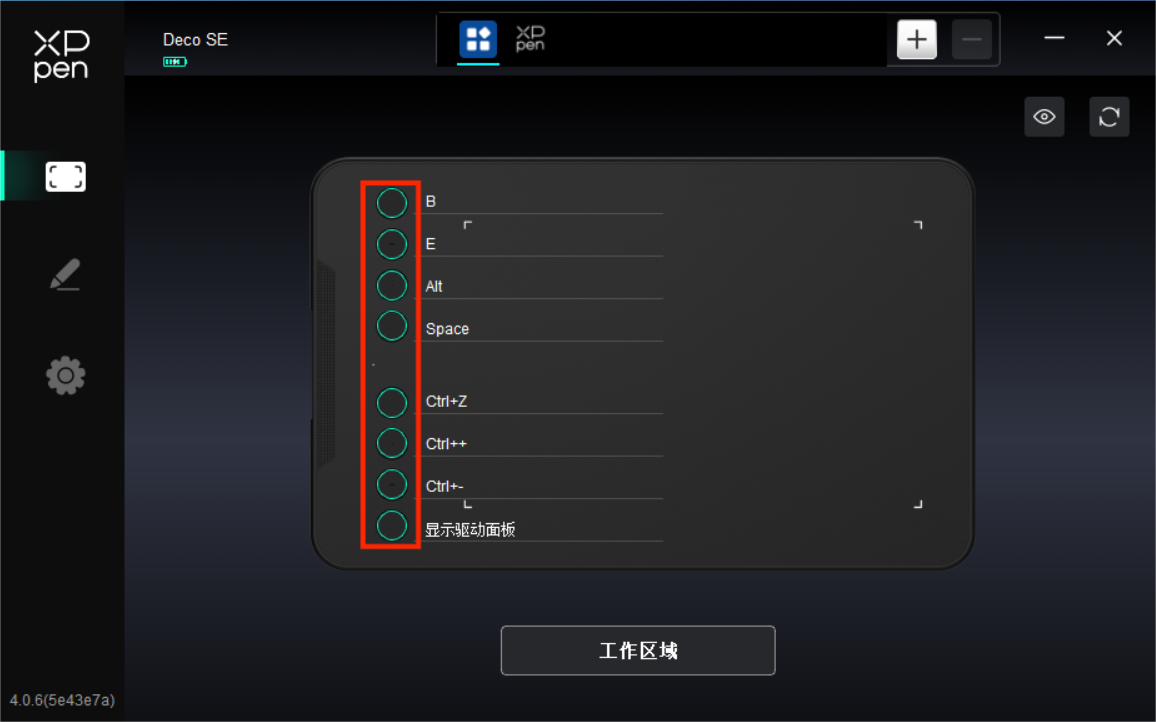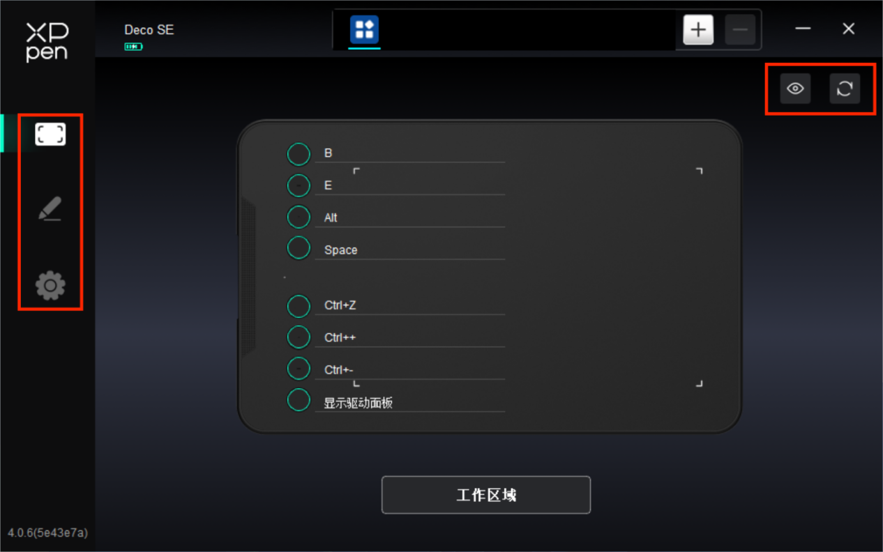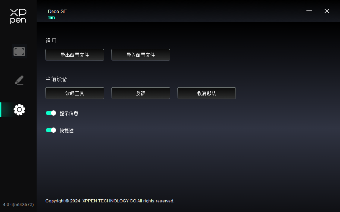 点击左侧栏图标可切换驱动功能,从上到下依次为设备设置,笔设置,驱动设置。