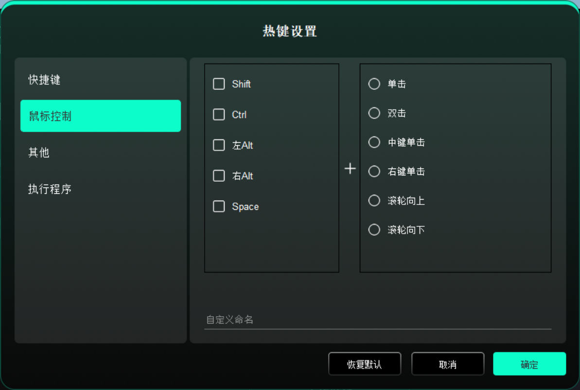 可设置“键盘+鼠标”的组合键:例如选择“Shift”和“单击”后,可在支持此组合键的软件中实现此快捷操作。