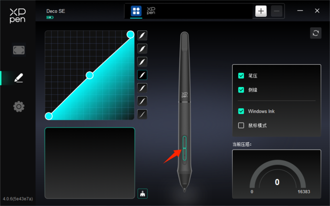 6)若笔压测试正常(Windows:在驱动程序笔设置界面,确保Windows ink已开启),再开启绘图软件测试。
