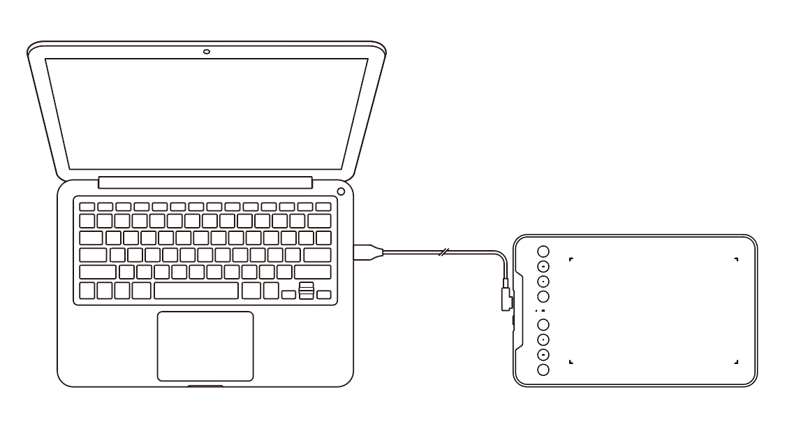 请将USB-A to USB-C连接线,分别连接至电脑端的USB接口和手绘板端的USB-C接口。