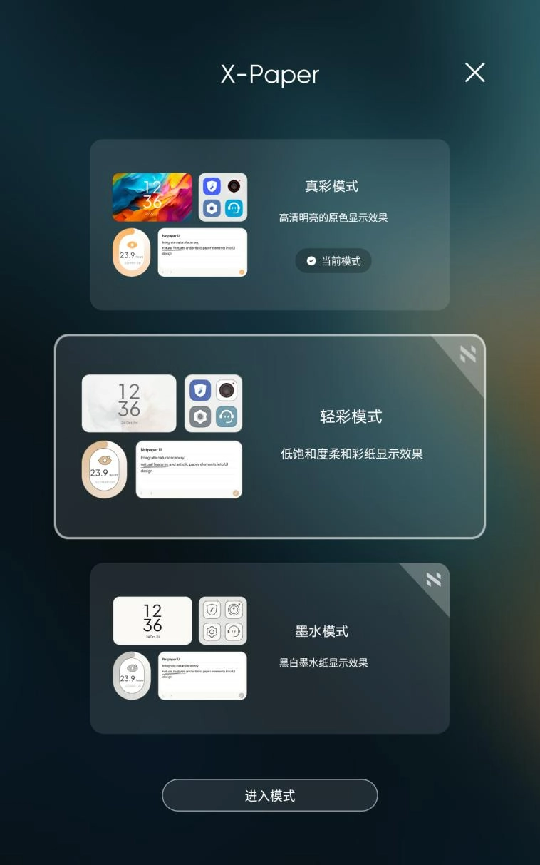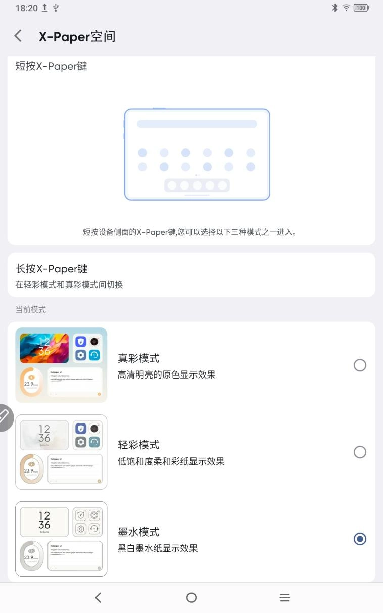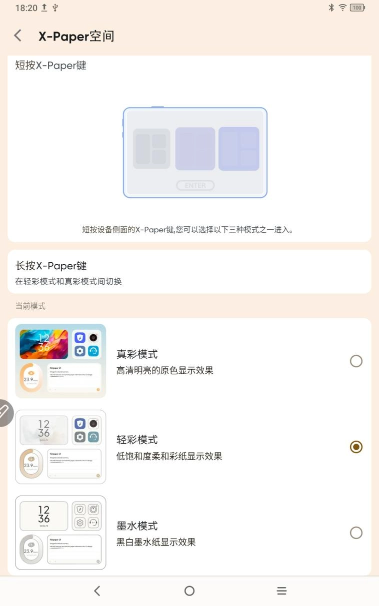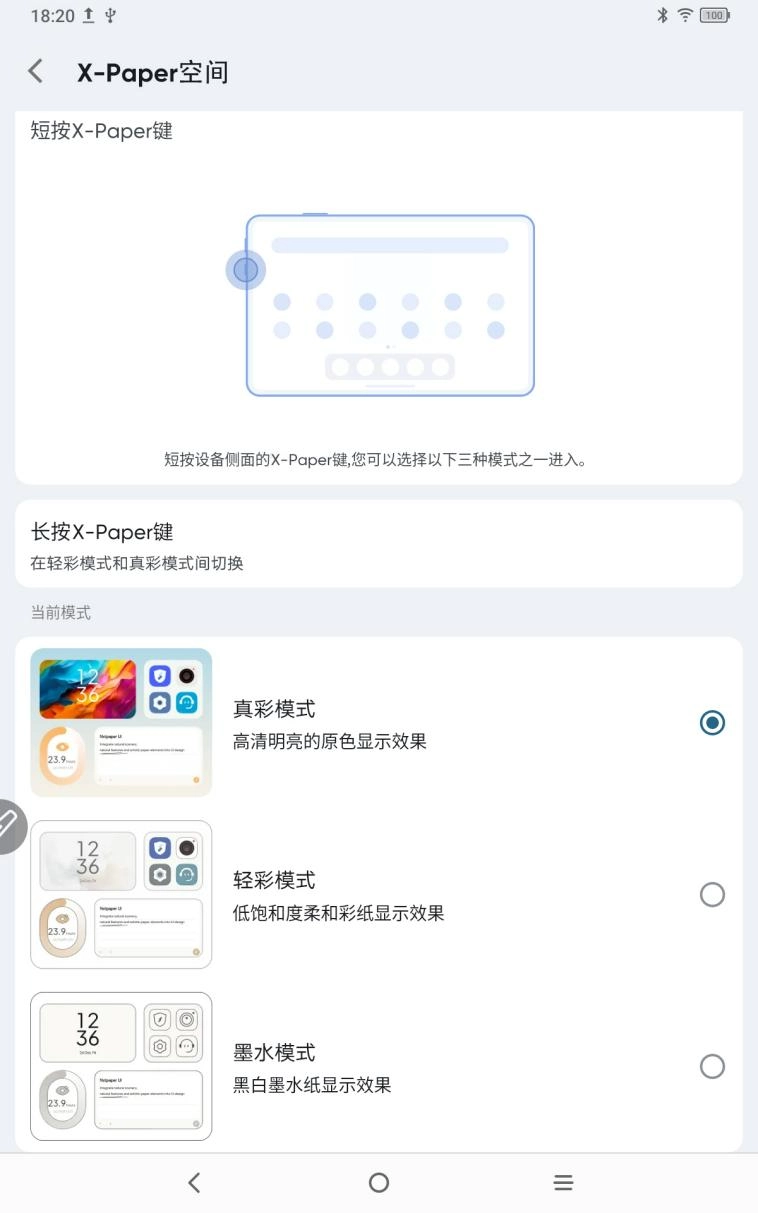 注意:可以通过短按X-Paper key切换轻彩模式和真彩模式