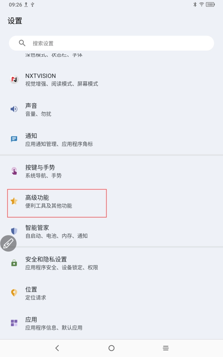 2. 设置进入“设置 - 高级功能 - 手写触控”选项。