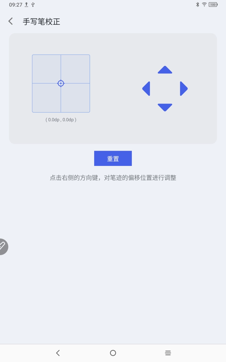 如果笔尖和实际笔落点存在位置偏移,可以打开此功能,点击右侧的方向键,对笔尖的偏移位置进行调整。