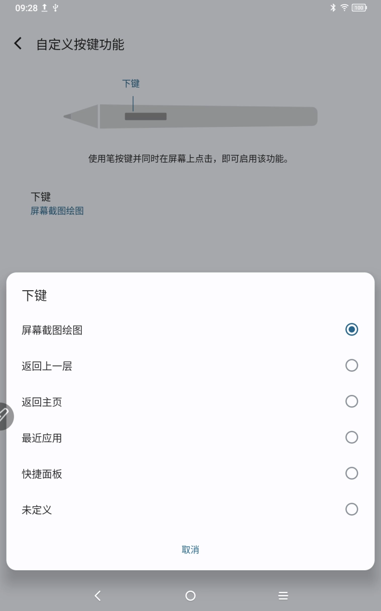 点击“下键”,如下图所示,用户可自行定义笔按键功能。