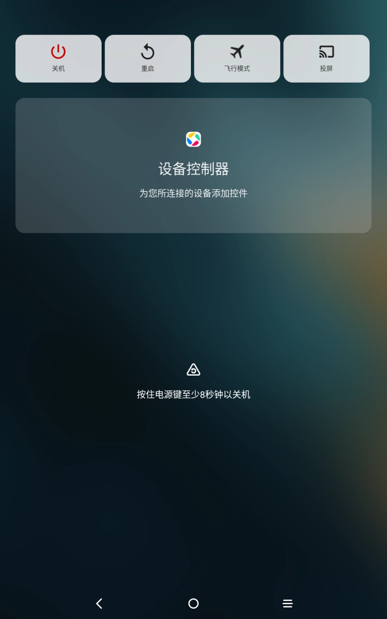 长按电源按键约2秒,出现提示页面(如下图),选择关机或重启。