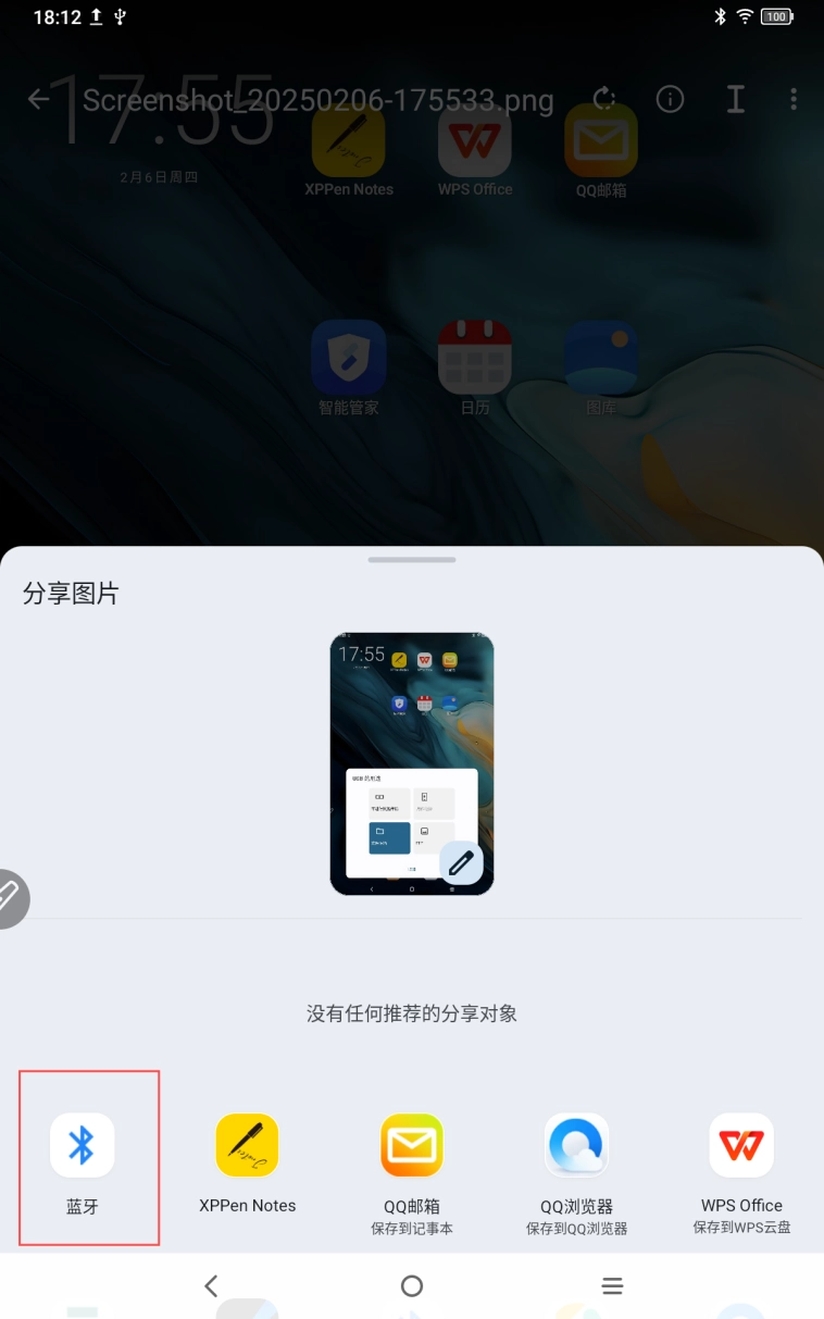 第三步:在平板上选择要传输文件,选择“蓝牙”方式分享,如下图。
